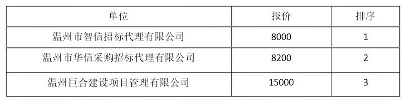 根據(jù)《溫州市工業(yè)與能源發(fā)展集團(tuán)有限公司采購代理機(jī)構(gòu)庫管理辦法(試行)》等有關(guān)規(guī)定,溫州有色冶煉有限責(zé)任公司就物業(yè)管理中心-物業(yè)管理服務(wù)項目在溫州市工業(yè)與能源集團(tuán)采購代理機(jī)構(gòu)庫內(nèi)隨機(jī)抽取三家采購代理機(jī)構(gòu)并組織報價。